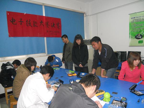 2013年3月30日,上午9:00在新实验楼310举办了电子技能大赛决赛——焊接、组装环节。辅导员侯静老师、电协会长梅闯为本环节的评委。