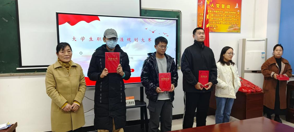为增强学生职业生涯规划意识,提升学生综合素质和就业能力,11月16日下午,我院在6#楼314会议室举行2023年大学生职业生涯规划大赛决赛。院党总支书记武莹,院长朱跃峰,党总支副书记王倩,团总支书记王文慧,教研室主任韩华、尹甜甜及姚燕、蒿孟丽等老师担任评委,大赛由张雷勇主持。