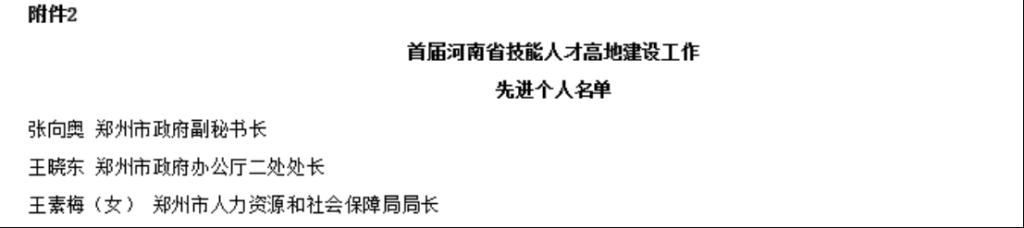 我校教师获得首届河南省技能人才高地建设工作省政府通报表扬