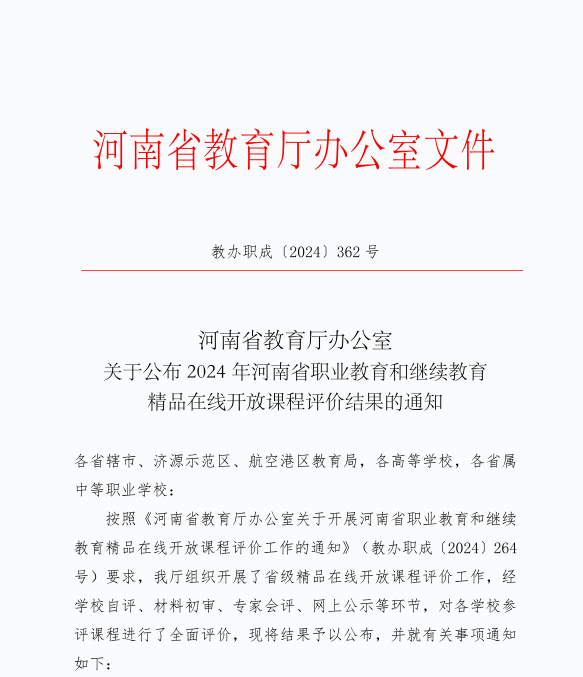 我校12门课程通过2024年河南省职业教育和继续教育精品在线开放课程评价