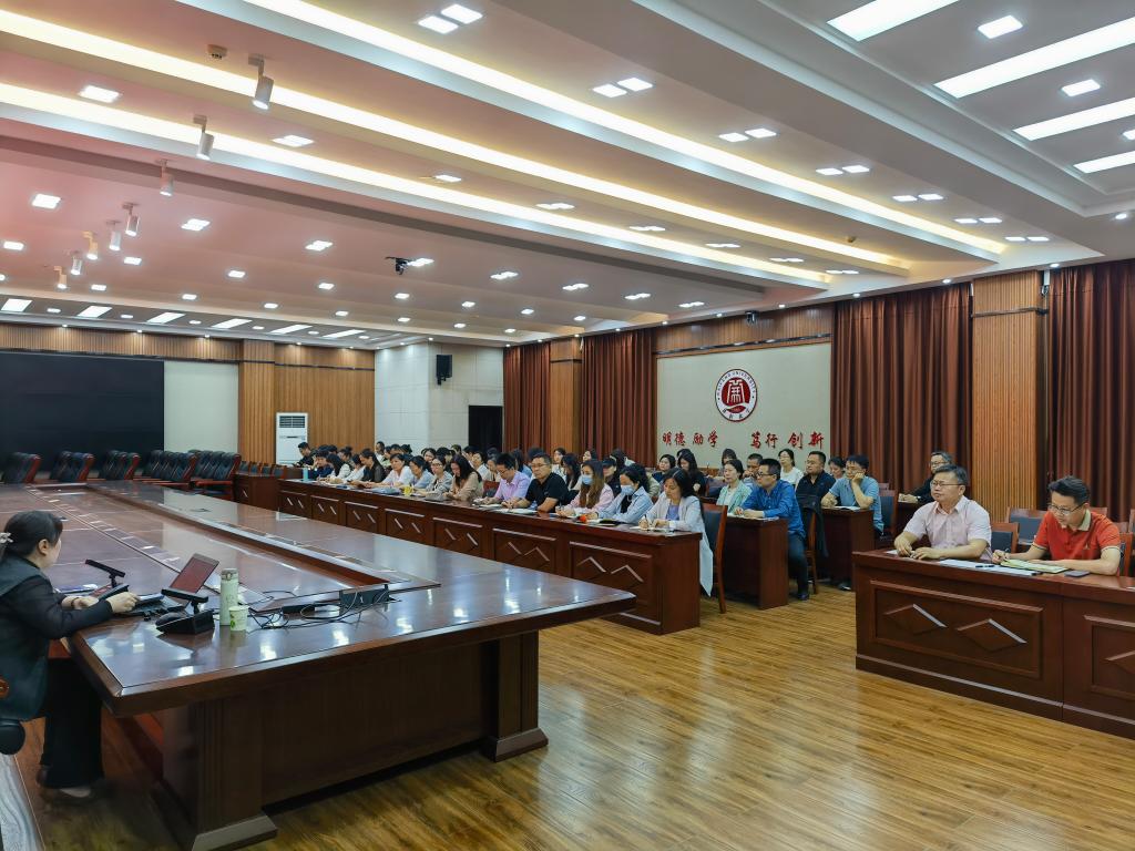 本站讯 5月8日下午,我校在行政楼四楼第二会议厅举办“深耕资源建设,赋能教学创新”专业教学资源库建设专题报告,报告由教务处处长王茜主持,材料与化学工程学院副院长王明瑞主讲,各专业学院副院长、教研室主任等参与国家级、省级、校级专业教学资源库建设老师参加。