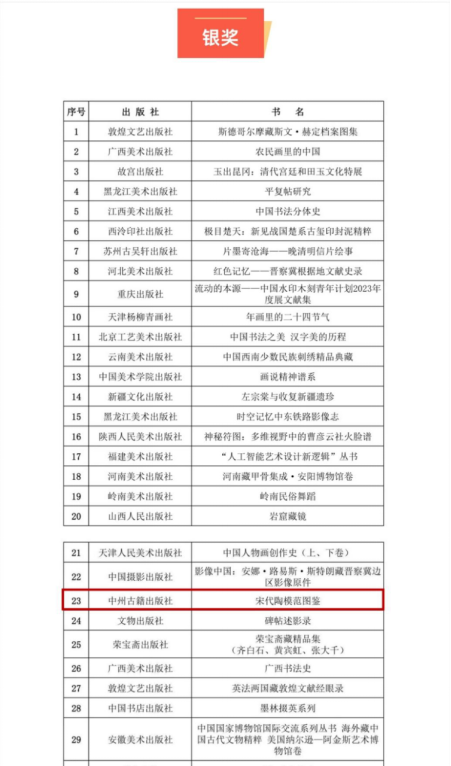 《宋代陶模范图鉴》获第35届“金牛杯”全国优秀美术图书银奖
