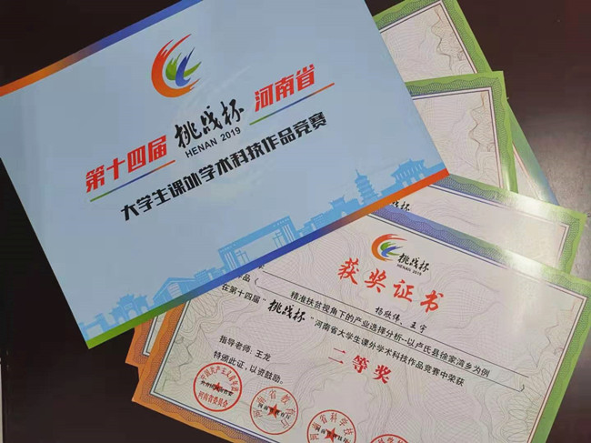 近日,由共青团河南省委、河南省教育厅、河南省科技厅、河南省科学技术协会、河南省学生联合会共同举办的第十四届“挑战杯”河南省大学生课外学术科技作品竞赛结果公布,我校多个作品获奖。由王龙老师指导的作品《精准扶贫视角下的产业选择分析-以卢氏县徐家湾为例》荣获二等奖,由姚家琛、李莉老师指导的作品《桌面景观加湿器》,由边疆、姚家琛老师指导的作品《未来之星》,由薄利娜、李俊霞老师指导的作品《朱仙镇木板年画文化传播调研报告》,由王龙老师指导的作品《一种全面屏手机前置摄像头结构设计》均荣获三等奖。