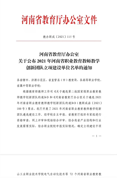 本站讯 近日,河南省教育厅公布2021年职业教育教师教学创新团队立项建设名单。经过河南省教育厅专家组的资格审查、网上评审和现场综合评审,结合我省产业结构和行业发展需要实际,我校现代物流管理专业教师教学创新团队成功入选。