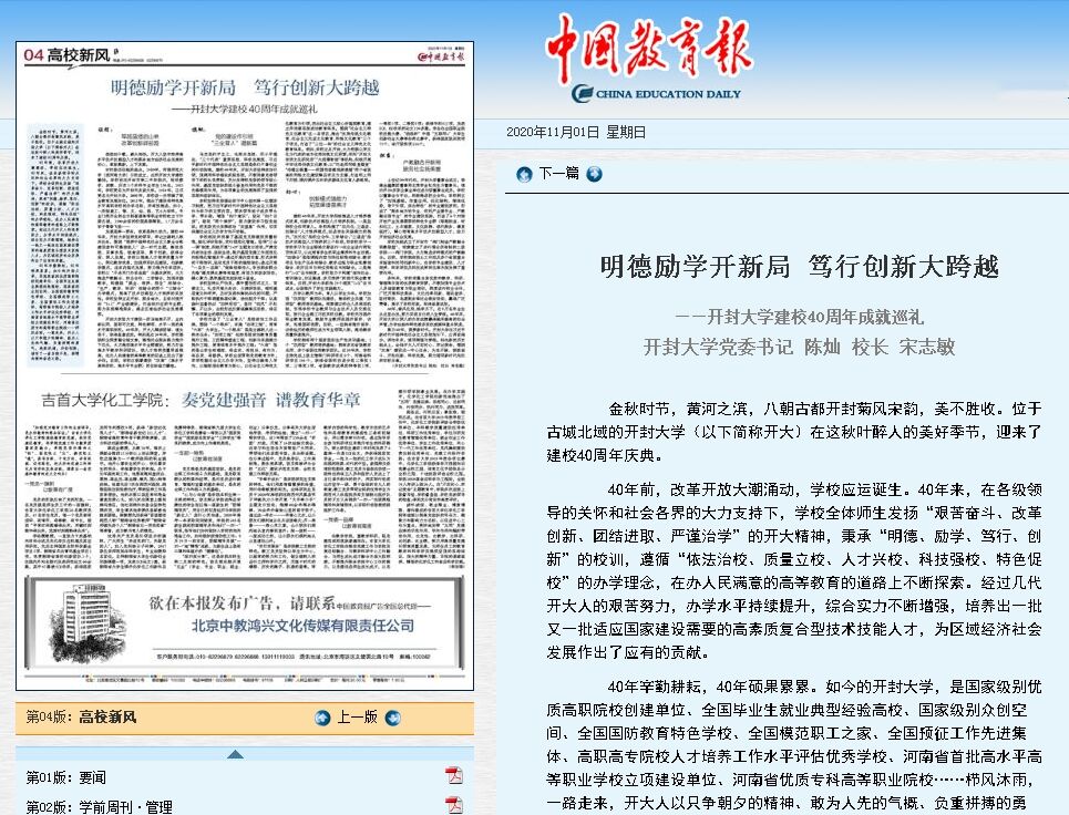 金秋时节,黄河之滨,八朝古都开封菊风宋韵,美不胜收。位于古城北域的bat365在线官方网站(以下简称开大)在这秋叶醉人的美好季节,迎来了建校40 周年庆典。