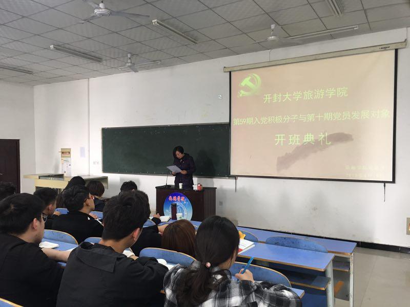 4月15日下午,旅游学院在15#435教室举行了分党校第59期入党积极分子培训班暨第10期党员发展对象培训班开班仪式。参加开班典礼的有bat365在线官方网站工会副主席秦雪峰、旅游学院党总支书记尤影及相关负责人,63名入党积极分子、22名党员发展对象参加了本次开班典礼。开班典礼由学院团学联组织部学生党员候闯主持。