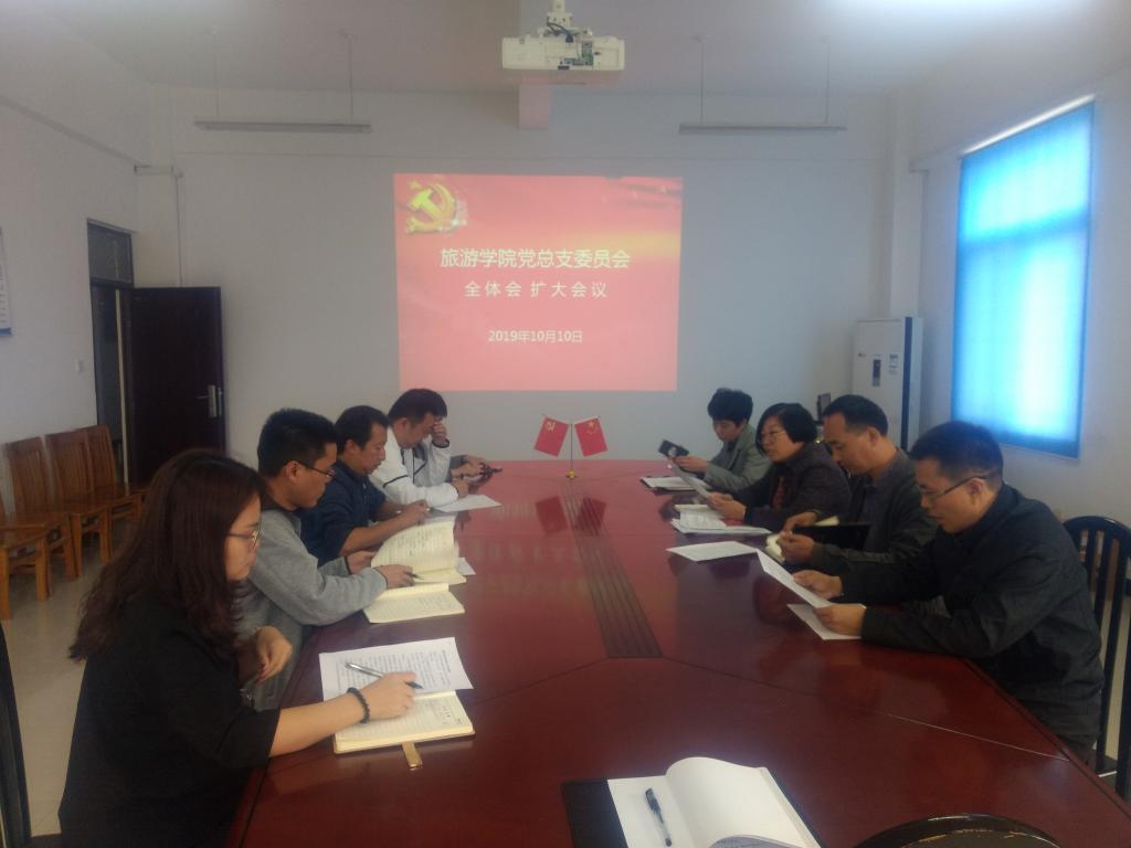 10月10日下午,旅游学院党总支在学院会议室召开党总支委员会扩大会议,总支全体委员和教工、学生党支部委员参加。会议由学院党总支书记尤影主持。