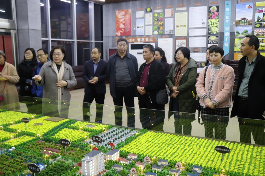 随后,在通许县主管旅游工作的副县长单秋斌同志的带领下,学院教师来到“河南省产业扶贫龙头企业”——开封市岳家湖千菊实业有限公司,考察千亩菊园的产业经济发展情况。公司董事长于顺霞女士详细介绍了菊花产业的发展情况,未来将依托国家级3A景区千亩菊园和岳家湖,打造集医养、休闲度假和研学旅游为一体的旅游度假区的规划方案。学院领导与教师围绕产业发展、旅游度假区规划建设、旅游新业态开发等问题与县政府有关领导和企业负责人进行了深入探讨交流,就未来双方开展项目合作达成初步共识。