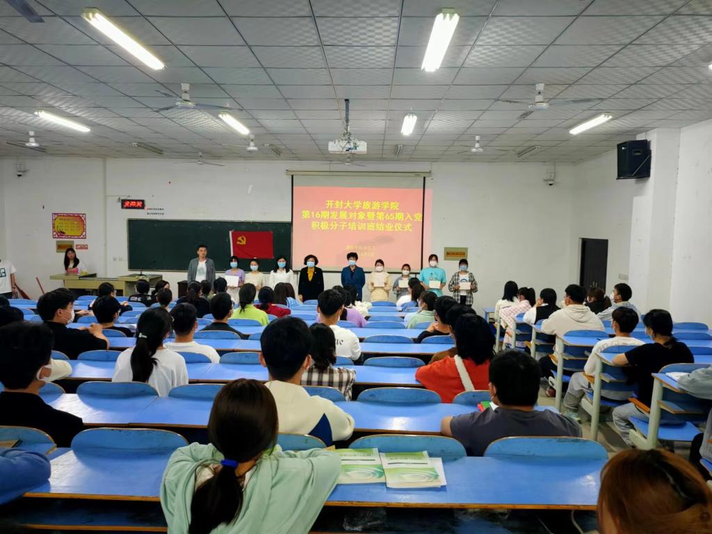5月2日,旅游学院在15号楼419教室举行第16期发展对象暨第65期入党积极分子培训班结业典礼。旅游学院党总支书记尤影、副书记杨艳丽及全体辅导员出席典礼。结业典礼由旅游学院学生党支部组织委员陈加龙主持。
