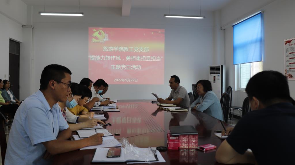为切实推进“能力作风建设年”活动,激发党员教师勇挑重担、干事创业的精神,9月22日下午,旅游学院教工党支部召开“提能力转作风,勇挑重担显担当”主题党日活动,学院全体党员教师参加,会议由教工党支部书记王振鹏主持。