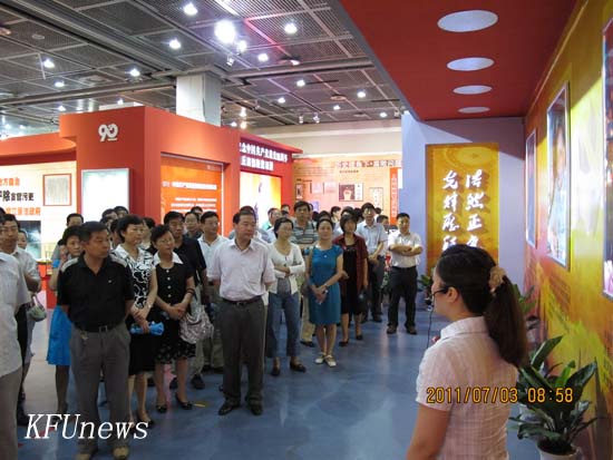 本站讯 为庆祝中国共产党成立90周年,省纪委在省艺术中心美术馆主办了“光辉历程.浩然正气”——河南省庆祝中国共产党建党90周年反腐倡廉大型展览。7月3日上午,校领导储建新、赵辉、范金梅、何世玲、耿广利、成芳及全校中层正职领导干部赴郑参观展览。