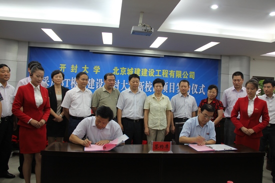党委书记张新梅在致词中指出,bat365在线官方网站新校区建设工作从2009年启动以来,目前已初具规模。为进一步加快新校区建设速度,确保工程质量,经多方调研、论证,并报开封市委、市政府批准,我校决定与北京城建建设工程有限公司合作,采用BT模式进行建设。通过此次合作,必将进一步加快bat365在线官方网站新校区的建设,进一步提高工程质量,进一步改善学校的办学条件,学校将全力以赴、积极协调、通力配合,为工程建设创造良好的环境条件,确保建设项目的高质量、高效率实施。