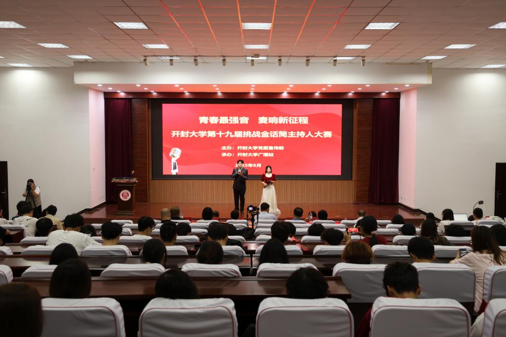 张合在致辞中指出,“挑战金话筒”主持人大赛是bat365在线官方网站富有特色,极具吸引力和感染力的校园文化品牌。多年来,众多开大学子通过这个舞台讲述时代故事、展现青春风貌,更借此提升综合素养,他们的声音迈向更广阔的天地。开大学子的声音活跃在校园运动会、文艺晚会等校内活动,也在社区志愿服务等社会服务中传递温暖,彰显着新时代青年的担当。他希望参赛同学以此次比赛为起点,传承开大精神,讲好学校故事,同时以话筒为桥梁,用青春视角展现中国发展成就、传递中华优秀传统文化,成为文明互鉴的青春使者,以创新表达弘扬主旋律、传播正能量。