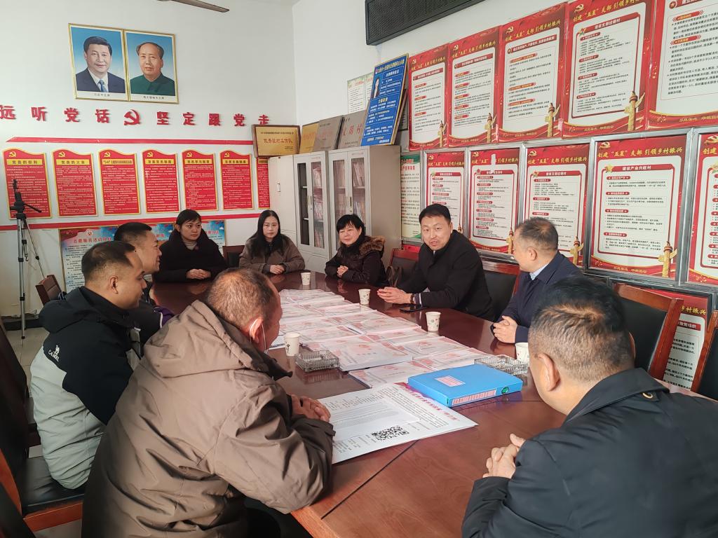 驻村第一书记王龙和村“两委”班子成员分别介绍了十里铺村的基本情况、产业发展情况和基础设施建设情况。乡党委书记赵泽涛介绍了村“两委”换届情况和现阶段大桥乡对十里铺村的政策支持情况,并就产业发展方向、项目帮扶措施等方面进行了针对性指导。