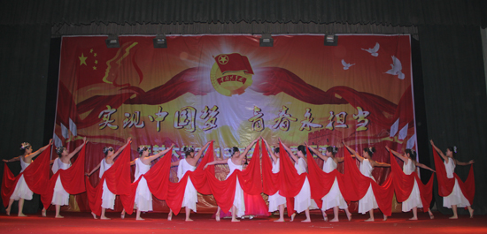 本站讯 5月9日下午,我校在金松大礼堂隆重召开纪念建团91周年暨五四运动94周年表彰大会,并举行五四文艺汇演。校领导张新梅、拜五四、储建新、万是明、范金梅、何世玲、李新春、耿广利、成芳出席大会,大会由团委副书记陈嘉慧主持。