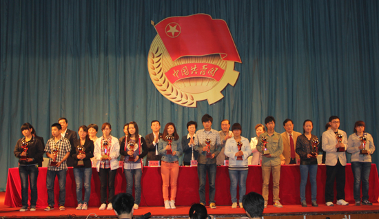 会上对2012~2013学年我校共青团各项先进集体和个人进行表彰。共表彰了化学工程学院团总支、财政经济学院团总支和电子电气工程学院团总支3个先进团总支,刘磊、刘颖和关朝阳3名优秀团总支书记,31个红旗团总支,355名优秀团干部,785名优秀团员,3名优秀社团负责人,34名优秀社团成员。