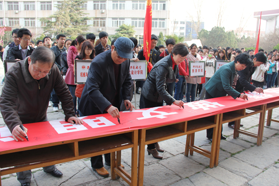 本站讯 为迎接第十八个“世界读书日”的到来,结合学校大学生日常行为文明规范养成教育活动的开展,引导学生多读书、读好书,养成良好的读书学习习惯,促进优良学风校风建设,4月2日下午,我校在校图书馆前举行了“立身·立学·读书”活动月启动仪式。副校长赵辉、图书馆、学生处、离退处、关工委等部门的负责人以及3个校区的部分学生代表参加。