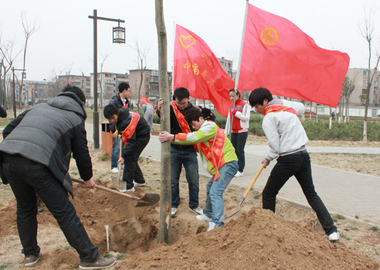 我校青年志愿者参加“全民参与 绿化家园”植树活动
