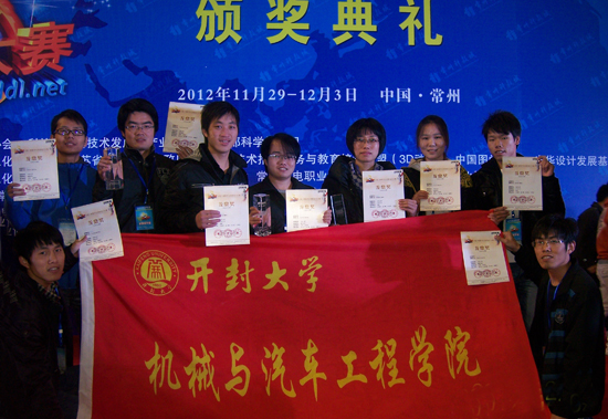 在这次大赛中,我校参赛选手在机械与汽车工程学院院长朱跃峰、指导教师李辉、王晓明等的指导下,通过积极准备和精心组织,从今年4月开始备战至今,选手们首先在河南省赛区选拔赛中脱颖而出,并在全国总决赛中,经过两天紧张激烈的角逐,我校获得了“优秀组织奖”和 “最佳模具设计奖”,我校选手们获得了两个二等奖。