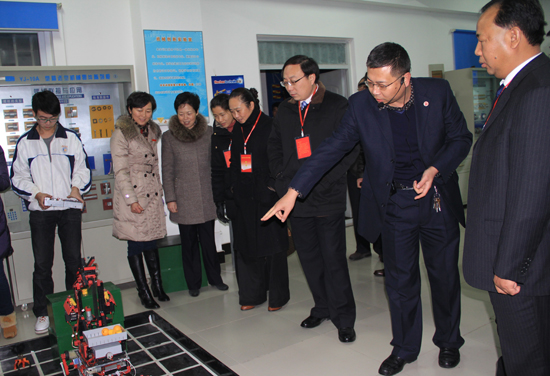 汇报会结束后,专家组在学校领导陪同下,参观我校省级示范高职院校建设成果展并考察校内实验实训基地。
