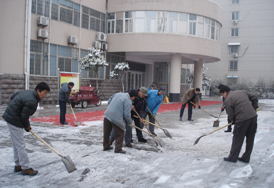 本站讯 12月14日一大早,我校教职工自发组织对校内积雪进行了清扫。由于对道路积雪及时进行了清理,方便了师生通行,确保了师生的安全和学校各项活动的正常开展。