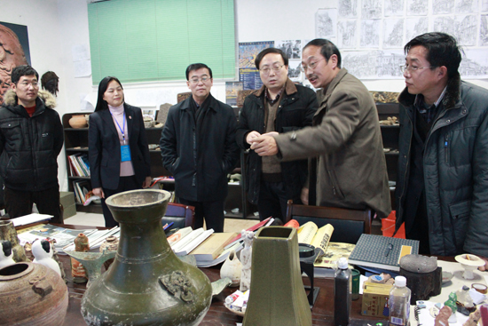 期间,专家组组长、郑州铁路职业技术学院党委书记穆瑞杰还在校长拜五四的陪同下重点考察了我校非物质文化遗产研究基地,该研究基地以开封历史文化遗产为研究对象,开展文化传承和创新研究,重点进行宋代陶模、旅游品等项目的研究与开发。穆书记对此给予了高度评价,认为该项研究对学生参与开封文化旅游产品开发,提高学生综合素质,以文化建设推动区域社会经济发展,有效地发挥了示范推进作用。