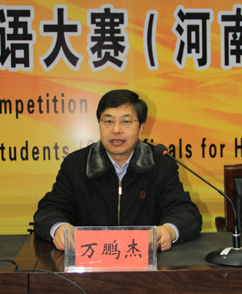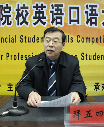 本站讯 12月15日,由省教育厅主办、我校承办、河南天一教育集团协办的“第六届河南省高职院校技能大赛暨2013年全国职业院校英语口语大赛河南选拔赛”在我校成功举行。河南省高校外语教学委员会委员、专科大学英语分会会长、安阳工学院副院长万鹏杰、我校校长拜五四、副校长赵辉、耿广利,大赛评委,参赛高校选手及指导教师参加大赛开幕式。
