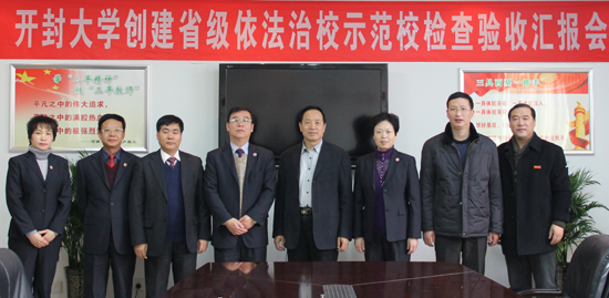 本站讯 12月19日,省教育厅“依法治校示范校”专项检查组一行3人,在组长中原工学院副院长董丞明的带领下莅临我校,就创建“河南省依法治校示范校”工作情况进行检查验收。我校校领导张新梅、拜五四、储建新、万是明、成芳,以及相关部门负责人参加了检查验收汇报会。汇报会由党委副书记储建新主持。