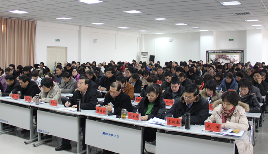本站讯 12月7日上午,省委宣讲团党的十八大精神报告会在我校国教楼五楼会议厅举行。省委宣讲团成员郑州大学学报主编辛世俊教授为我校师生作了深刻而又生动的宣讲,全体校领导、党员干部代表及学生骨干代表300余人参加了本场报告会。报告会由校党委书记张新梅主持。