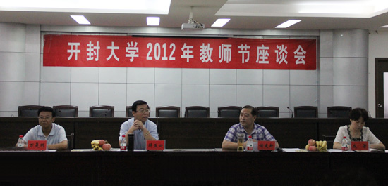 本站讯 9月10日下午,在第28个教师节来临之际,我校在晋安路校区行政楼会议厅组织召开了2012年教师节座谈会。校长拜五四,党委副书记储建新,副校长万是明,工会主席成芳以及学校教师代表参加了座谈会。