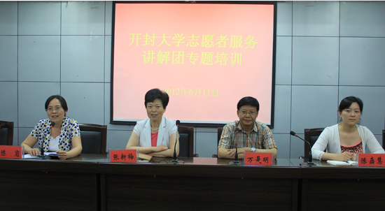 万校长就我校志愿者服务讲解团的进一步培训工作做了具体要求,希望同学们提高认识,珍惜此次锻炼机会,进一步弘扬“奉献、友爱、互助、进步”的志愿者精神,促进我校志愿者事业向专业化、品牌化发展,关注开封、了解开封、为中原经济区建设做贡献。