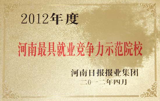 我校被评为“2012年度河南最具就业竞争力示范院校”