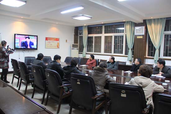 本站讯 2月22日,我校组织教职工收看河南卫视节目“十八谈”映象版开封篇电视直播。晚上10时,校党委副书记储建新、副校长万是明,及相关行政处室和部分院部负责人在行政楼二楼会议室集体收看了河南卫视节目“十八谈”映象版开封篇电视直播,并进行了学习讨论和交流。