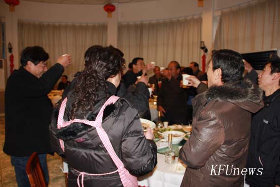 本站讯 1月22日,除夕之夜,爆竹齐鸣,喜气十足,年味浓浓,校内外到处洋溢着欢乐祥和的节日气氛。在合家欢聚之时,校领导莫华林、拜五四、储建新以及党政办公室、党委宣传部、学生工作部、保卫处、后勤服务中心和东京大道校区管委会等单位负责人与寒假期间在校的教职员工和留校学生在教职工餐厅共度佳节。