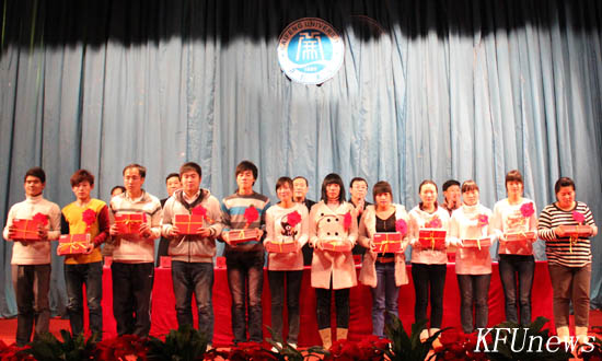 我校隆重举行2010—2011学年金松奖学金、开大奖学金暨奖先表优颁奖大会
