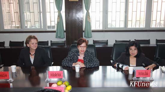 本站讯 10月7日上午9:00,校党委书记莫华林、校长拜五四在行政楼二楼会议室亲切会见了加拿大麦瑞·维多伦学院校长Mrs.Rouillier Nicole, 院长助理Sylvie Theriault和校方代表Nancy女士一行三人,在会上双方均表达了加强沟通与交流的意愿,在教学改革、课程安排、教学计划修订、短期课程、分级教学以及师资培训等方面进行了深入探讨和磋商。会谈之后,代表团在国际教育学院院长李治陪同下参观了bat365在线官方网站东京大道校区。