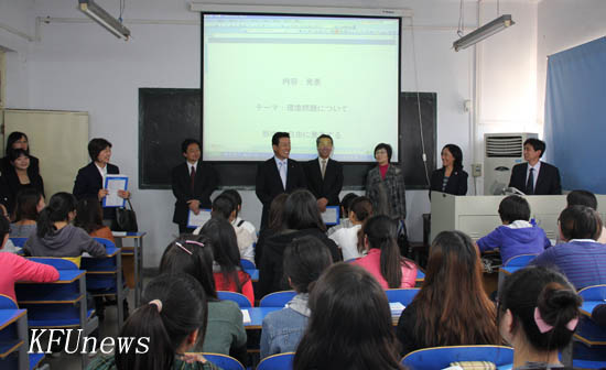 座谈结束后,代表团一行在耿广利及相关部门负责人的陪同下参观了校史馆、就业指导中心,并与外国语学院师生围绕环境问题进行了深入的座谈。