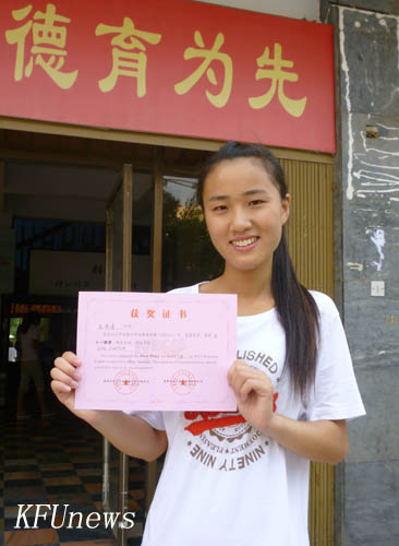本站讯 近日,从全国大学生英语竞赛组委会传来捷报,外国语学院2010级商务英语专业赵情情同学在2011年全国大学生英语竞赛决赛中表现突出,获得英语专业一等奖。全国大学生英语竞赛由教育部高等学校大学外语教学指导委员会和高等学校大学外语教学研究会联合主办。