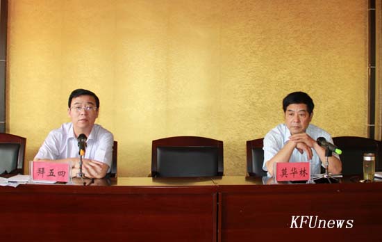 本站讯 7月19日至20日,我校召开了2011年工作会。会议总结了过去三年学校在各方面工作中所取得的成绩,并围绕学校十二五规划的实施进行了深入细致的讨论。校领导莫华林、拜五四、储建新、万是明、赵辉、何世玲、李新春、耿广利、成芳、杜爱灵、杨树、崔林,学校中层正职干部和相关部门负责人参加会议。党委书记莫华林、党委副书记、校长拜五四在会上做重要讲话,校领导储建新、万是明、赵辉做主题发言,部分单位负责人对本部门过去三年的工作进行了总结,并就今后三年工作打算进行了汇报。会议由党委副书记、校长拜五四主持。
