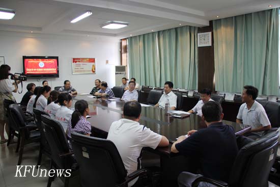 校党委书记莫华林、党委副书记、校长拜校长、党委副书记储建新分别讲话并与志愿者亲切座谈。校领导在讲话中对同学们的志愿行为给予肯定,并希望她们到西部后,努力工作,以实际行动展示我校大学生风采,要将个人发展与西部发展、国家政策联系在一起,为西部发展做出贡献,为母校争光。