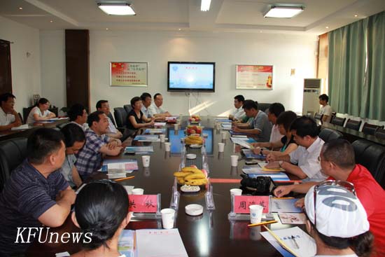 本站讯 7月27日下午,广东科学技术职业学院校长刘惠坚教授一行9人莅校考察,我校校领导莫华林、拜五四、储建新、赵辉在行政楼二楼会议室热情欢迎来访客人,党政办公室、招生就业处、实验实训中心、示范建设办公室及土木建筑工程学院等单位负责人参加了会谈。