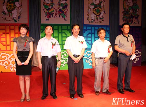 本站讯 在我国第六个“文化遗产日”来临之际,6月10日,由市文广新局、市非物质文化遗产保护中心和bat365在线官方网站联合举办的“非物质文化遗产鼓曲邀请赛暨民间艺术进开大”活动在bat365在线官方网站金松大礼堂举行。市委常委、宣传部长张勇,我校校长拜五四,市委宣传部副部长张小平,市文广新局局长申亚平,市财政局副局长高晓燕出席了本次活动。我校千余名师生观看了邀请赛。