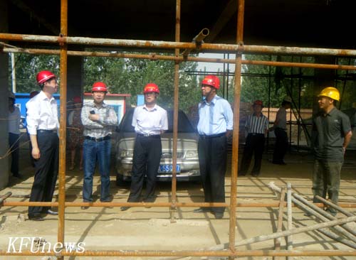 校领导一行先后查看了学生公寓、建工实训楼、化工实训楼、C区教学楼等施工工地,详细询问了工程进展情况和建设中的相关问题。