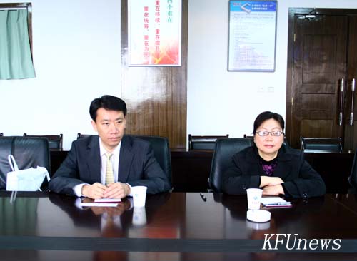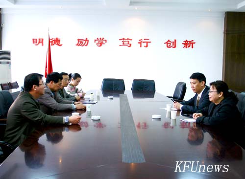 本站讯 2011年4月13日上午,北京外国语大学诺加培训学院左罡院长和刘芳主任访问我校,校党委书记莫华林、校长拜五四,国际教育学院院长李治博士在行政楼二楼会议室热情接见了两位来宾。