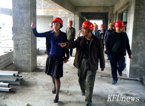 赵校长一行先后查看了化工实训楼、建工实训楼等施工工地,并和现场技术、管理等人员进行了交谈,询问了工程进展情况。随后,赵校长一行又到建设指挥部会议室,指挥部副指挥长侯彦喜向大家详细介绍了东京大道校区建设的总体概况。听取汇报之后,赵校长希望随同的两个学院负责人要和建设指挥部多加强联系,多沟通,尽心尽力把工作做细做透,为即将进行的搬迁工作做好充分准备。