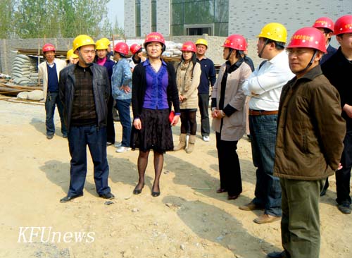 本站讯 2011年4月14日上午,副校长赵辉带领实验实训处、化学工程学院、土木建筑工程学院负责人和部分实验实训老师、多功能材料研究中心工作人员在指挥部工作人员的陪同下在东京大道校区建设工地检查指导工作。