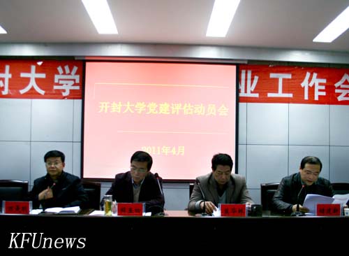 本站讯 2011年4月2日下午,我校在行政楼二楼会议厅再次召开了迎接河南省普通高校党建评估动员会,学校党政领导对迎评促建工作进行全面动员部署。党委书记莫华林作动员报告,党委副书记、校长拜五四主持会议。党委副书记、副校长储建新、副校长万是明在主席台就坐,其他党政领导出席会议。学校中层副职以上党员领导干部参加了会议。