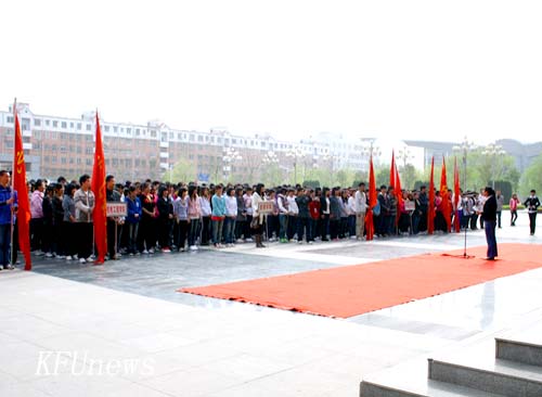 本站讯 4月7日下午,由校党委宣传部和管理科学学院联合举办的,以“展我学子才干,共祝青春激昂”为主题的“校园导游和校史馆解说员大赛”启动仪式在明德广场举行。参加启动仪式的领导有:校长拜五四,校党委副书记、副校长储建新,校党委宣传部部长曹国荣,管理科学学院党总支书记陈力,院长袁平,教务处副处长曹红霞,宣传部副部长陈友东,管理科学学院党总支副书记张六成,副院长郭军明。管理学院和党委宣传部全体教师以及近千名各院学生代表也参加了启动仪式。启动仪式由管理科学学院党总支书记陈力主持。