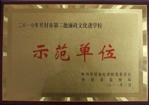 本站讯 近日,从汴纪办发【2011】4号、5号、6号文件获悉,我校被命名表彰为全市“廉政文化建设示范点单位”、“2008—2010年廉政文化建设工作先进单位”。