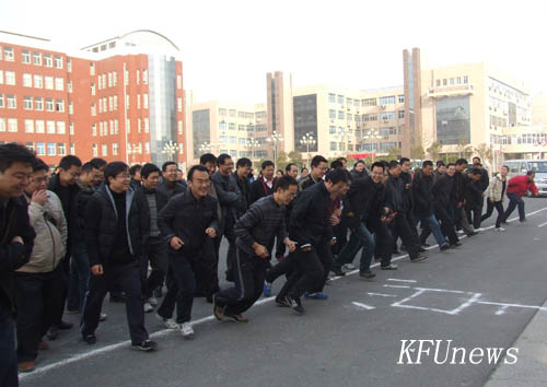 本站讯 为了活跃我校教职工文体活动,增强教职工身体素质,继续全面实施全民健身计划纲要,12月9日下午,校工会组织的全校教职工冬季越野赛在晋安路校区举行。全校教职工按年龄分为男子甲、乙组和女子甲、乙组。男、女甲组和男、女乙组分别从学校北门、南门出发。